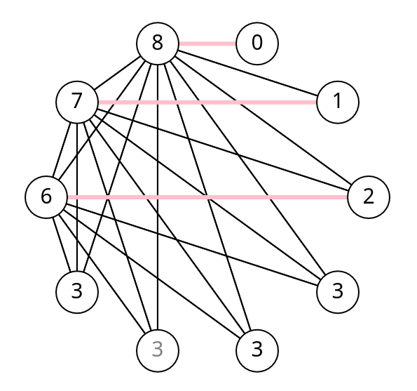 Regardons les personnes autres que M. Noël. La personne ayant serré la main de 8 personnes ne peut être couple qu’en avec celle qui en a serré 0, car c’est la seule personne qu’elle n’a pas saluée, donc toutes les autres ont serré une main.